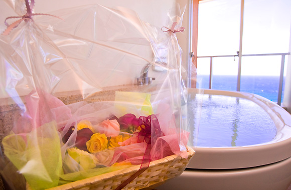 これまでにも、お客様のプロポーズという生涯のクライマックスの時を最高の想い出としていただけるよう、光のシークレット演出やフラワーアレンジメントなど、スタッフが工夫を凝らした様々な演出を施し、お客様からもお喜びの声を多数頂戴しております。もちろんプロポーズに留まらず、浜の湯では、お客様の様々な記念日を生涯心に残るよき想い出としてその胸に刻みつけていただけるような各種演出をプランさせていただきます。