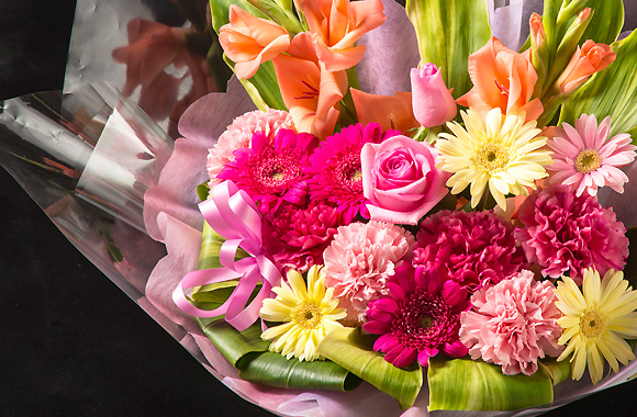 横約25㎝ × 高さ約25㎝ 記念日にぴったり、笑顔を誘う花アレンジメントです。普段なかなか言えない「言葉・気持ち」をメッセージカードに添えて…お持ち帰り用の手提げ袋付。