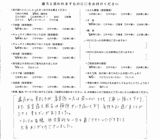 ご宿泊、アンケートへのご協力、ありがとうございました。