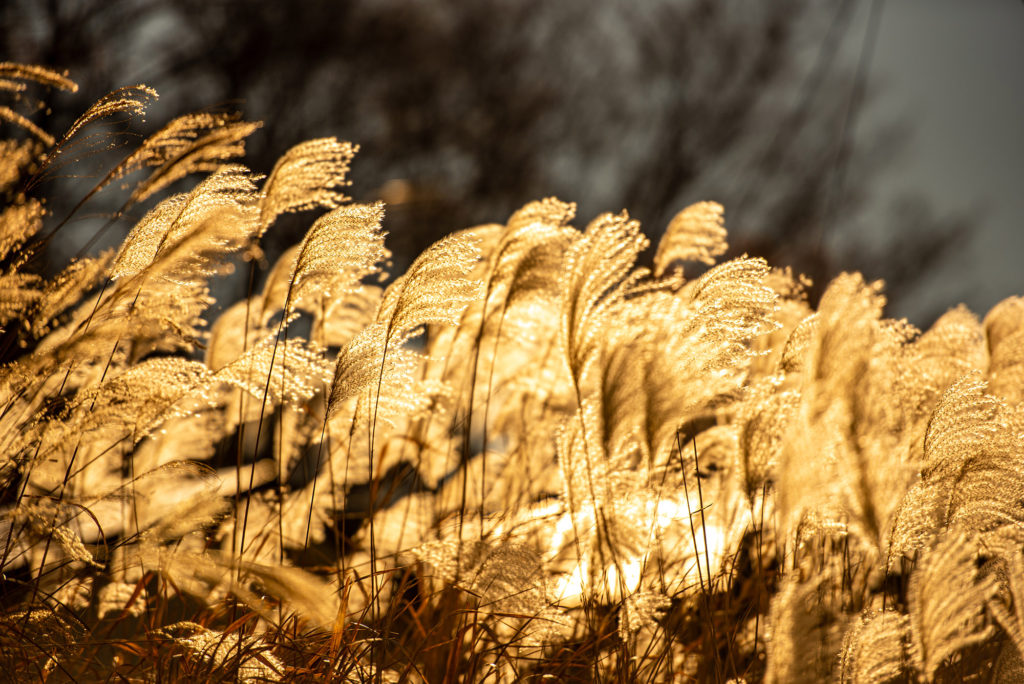 太陽の光を浴び黄金色に輝きながら、ゆらゆらと風に波打つ姿はまさに“すすきの大海原”。